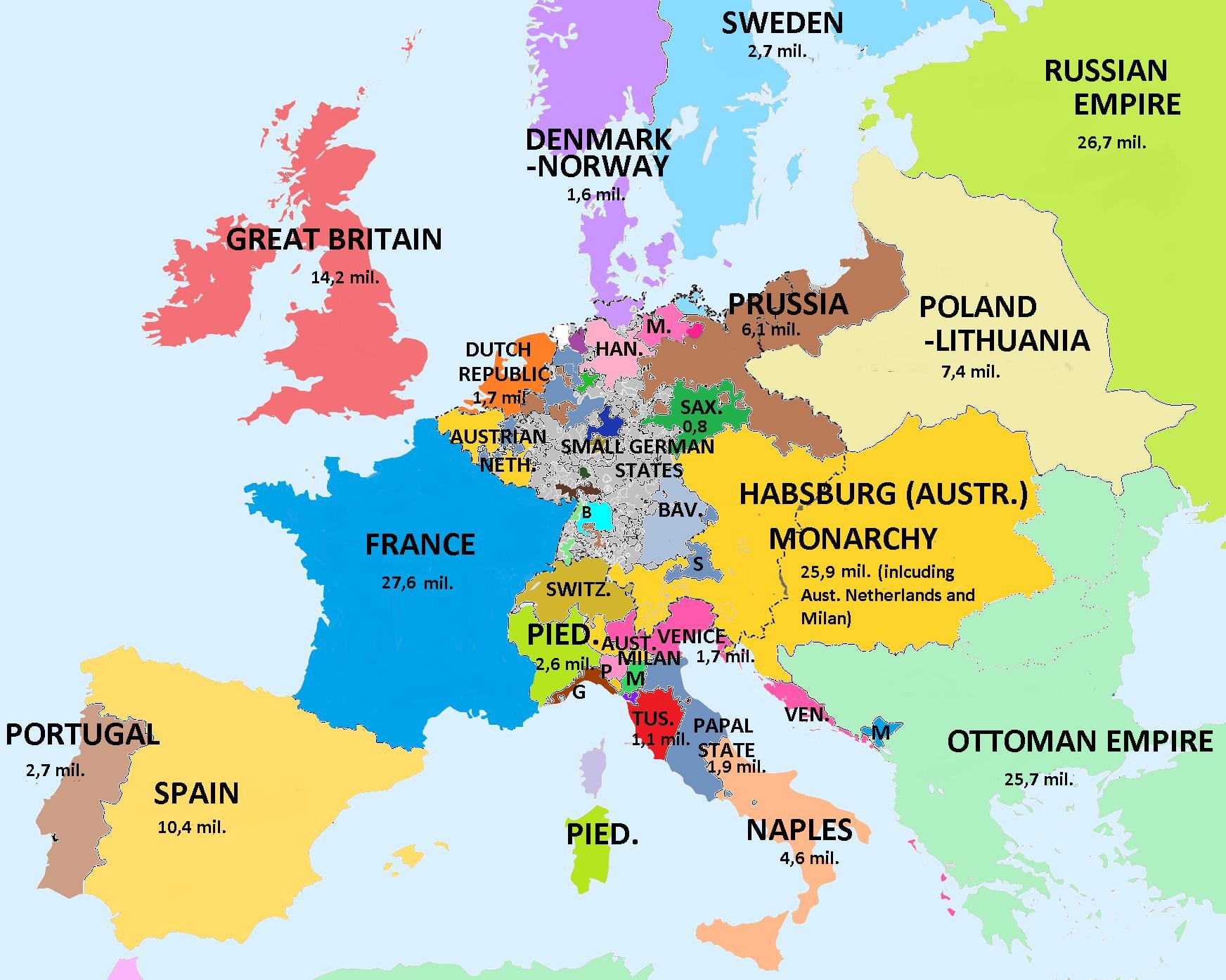 Bevölkerung Europas, 1789