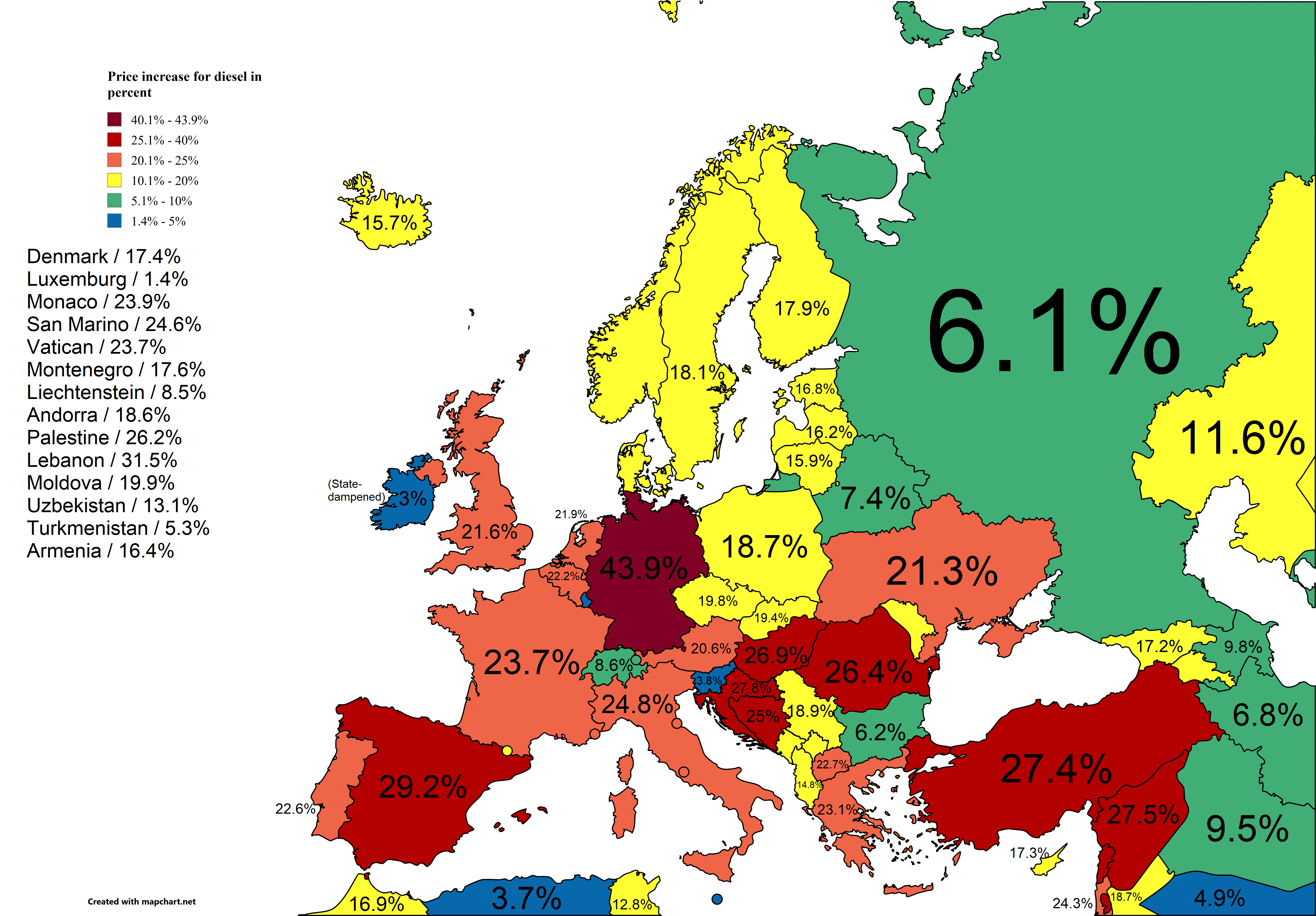 I have no idea where that figure for Ireland came from. Diesel is over 2 euro now, around 2.30 euro IIRC. The government hasn’t even cut the tax yet, just announced it.