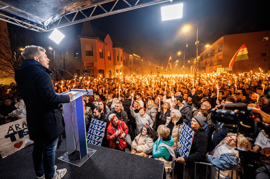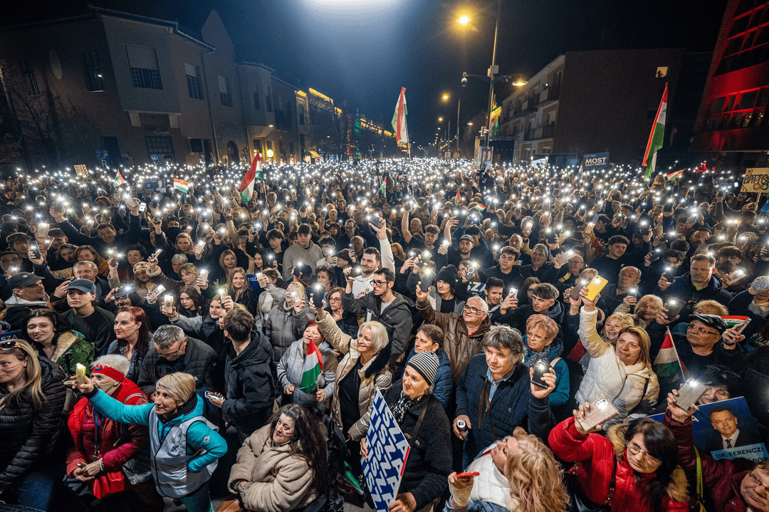 Eine endlose Menge. Am Bahnhof Hódmezővásárhely im Kreis Péter Magyar nahmen heute dreimal so viele Menschen teil wie vor zwei Tagen an der Busfahrveranstaltung von Viktor Orbán und János Lázár.