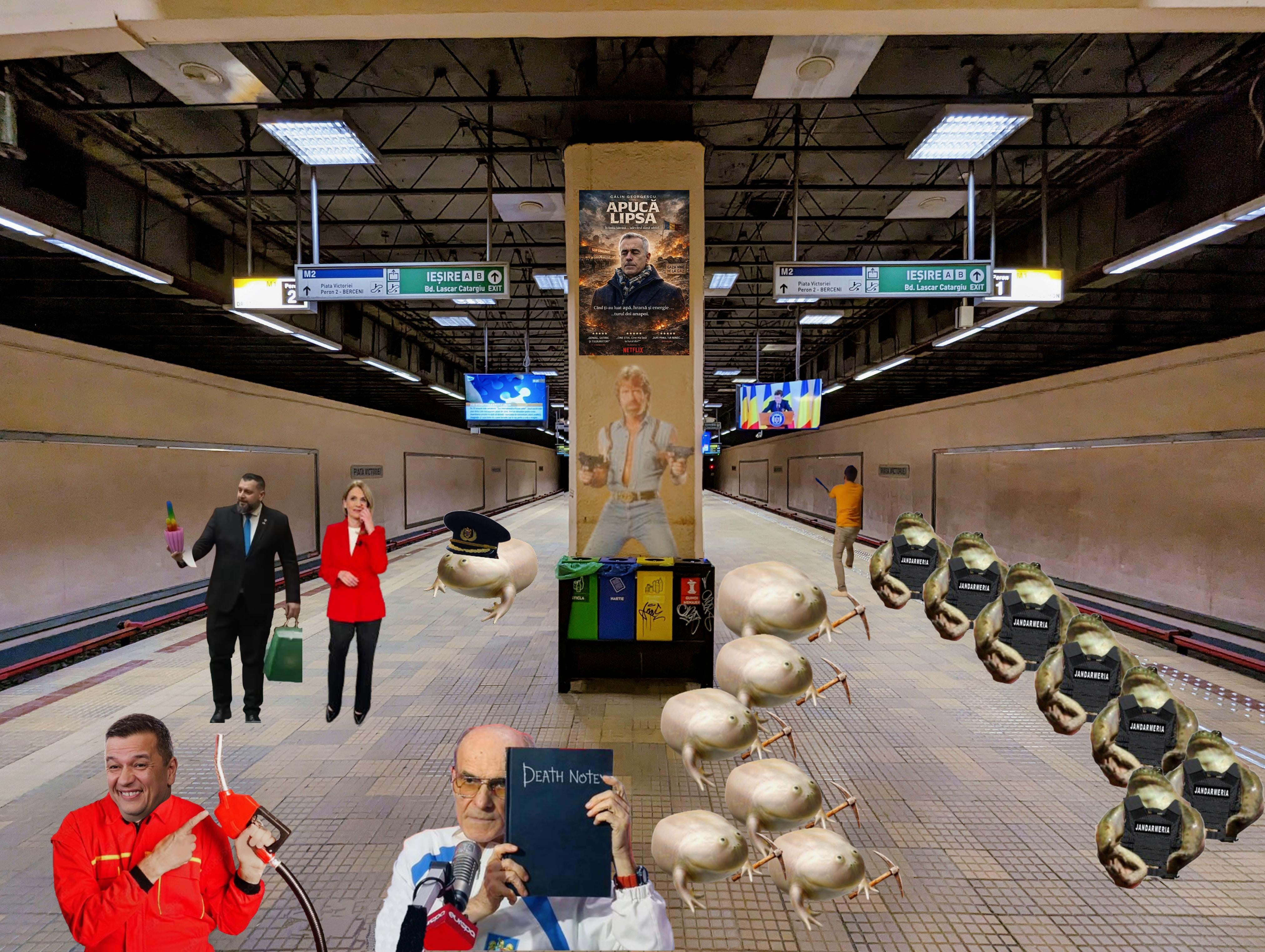GeotheHSLord on 25.03.2026 8:14 a.m. Ne aflăm în stația de metrou de la Piața Victoriei, unde au venit ieri minerii din Gorj la protest. [Faptul că aceștia s-au luat la bătaie cu jandarmii e altă poveste](https://www.libertatea.ro/stiri/bataie-mineri-jandarmi-protest-piata-victoriei-5673805). Domnul Grindeanu și sfântul PSD vin „în ajutorul poporului” prin [ultima propunere legată de încetinirea creșterii prețului la carburant prin plafonarea adaosului comercial](https://www.digi24.ro/stiri/economie/guvernul-urmeaza-sa-declare-stare-de-criza-pe-piata-carburantilor-ministrul-energiei-masurile-nu-vor-putea-absorbi-integral-socul-3690505). Lăsați-o, vă rog, în pace pe duamna Anca „Marș” Alexandrescu, [că oricum nu-i dă ANAF-ul pace](https://www.reddit.com/r/Romania/comments/1s2884i/vai_saracuta_de_ea_duamna_anca_are_probleme_cu/?utm_source=share&utm_medium=web3x&utm_name=web3xcss&utm_term=1&utm_content=share_button). Între timp, [un senator AUR a venit în Parlament să le arate celor de la USR ce-i place lui cel mai mult pe lume](https://stirileprotv.ro/stiri/politic/video-un-senator-aur-a-venit-cu-un-cactus-in-culorile-curcubeului-in-parlament-si-l-a-dedicat-celor-de-la-usr.html). Vă rog, de asemenea, să ținem un moment de reculegere pentru [legendarul Chuck Norris, care a plecat dintre noi din păcate](https://www.reddit.com/r/Romania/comments/1ryx3g9/a_murit_chuck_norris/?utm_source=share&utm_medium=web3x&utm_name=web3xcss&utm_term=1&utm_content=share_button). [CTP a venit cu o nouă recomandare ieri, la România în Direct](https://www.reddit.com/r/Romania/comments/1s2bb37/in_my_hands_the_means_in_my_heart_the_will/?utm_source=share&utm_medium=web3x&utm_name=web3xcss&utm_term=1&utm_content=share_button). [Între timp, situația s-a încins în suveranistan](https://www.reddit.com/r/Romania/comments/1rxv0pv/intre_timp_in_suveranistan/?utm_source=share&utm_medium=web3x&utm_name=web3xcss&utm_term=1&utm_content=share_button). Cei doi vor regreta decizia, adică pe ce vor mai vedea [APUCĂ LIPSA, noua capodoperă cinematografică inspirată din limbă veche a bătrânilor](https://www.reddit.com/r/Romania/comments/1s0ejeq/mare_grija_dragilor_imediat_vine_apuca_lipsa/?utm_source=share&utm_medium=web3x&utm_name=web3xcss&utm_term=1&utm_content=share_button)?