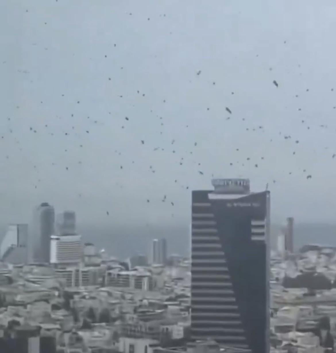 Ein riesiger Krähenschwarm kreist über Tel Aviv.