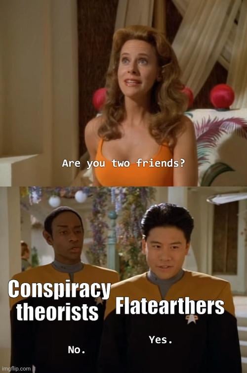 I don’t think flat earthers are conspiracy theorist, necessarily. Some might be. But ultimately, a flat earther believes in a different ideology of how earth and the solar system works. They don’t necessarily see it as a conspiracy theory but rather a conflict of ideologies.