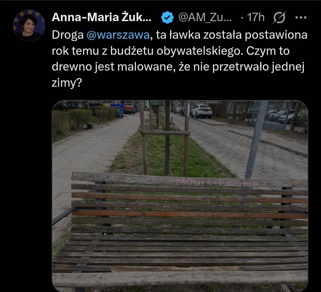 To na pewno nie jest ławka z zeszłego roku… może z zeszłej dekady, nawet sosnowe surowe drewno po roku by tak tragicznie nie wyglądało w tym ta próchnica?! … ktoś tu coś mocno kręci…