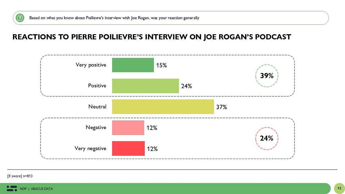 I can’t imagine many people who aren’t already Pollievre/Rogan fans tuned in to this podcast. In my mind it would be normal for positive reactions to be higher than negative ones in this situation.