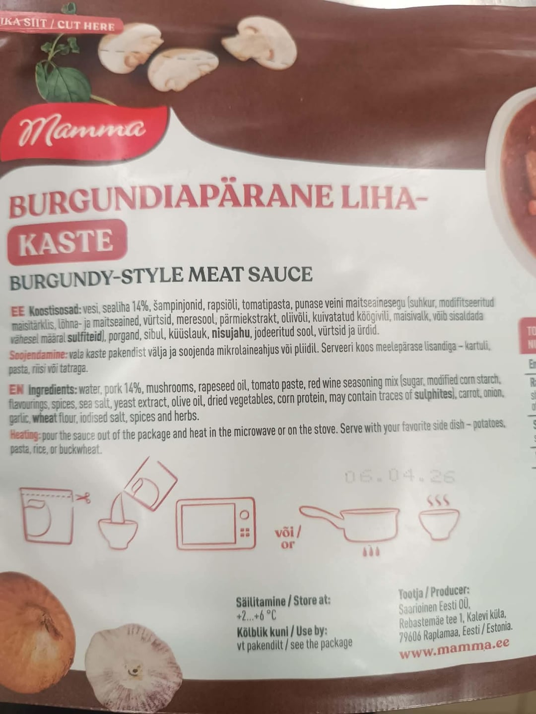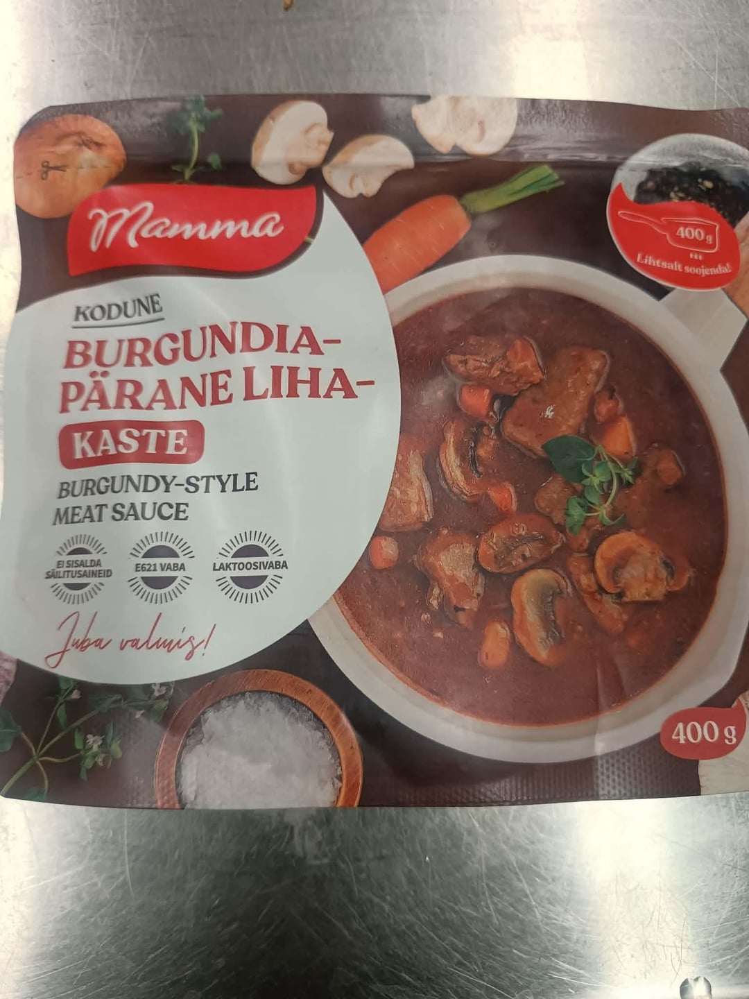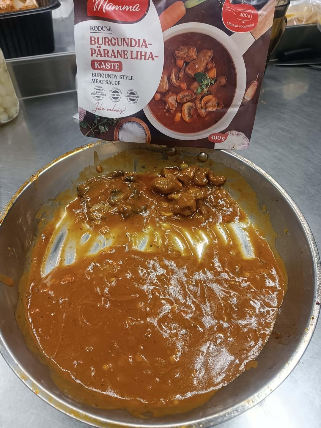 Ich habe Mamma’s Burgunder-Fleischsauce (400g-Packung) genommen. Auf der Verpackung steht, dass der Fleischanteil ~14 % beträgt.