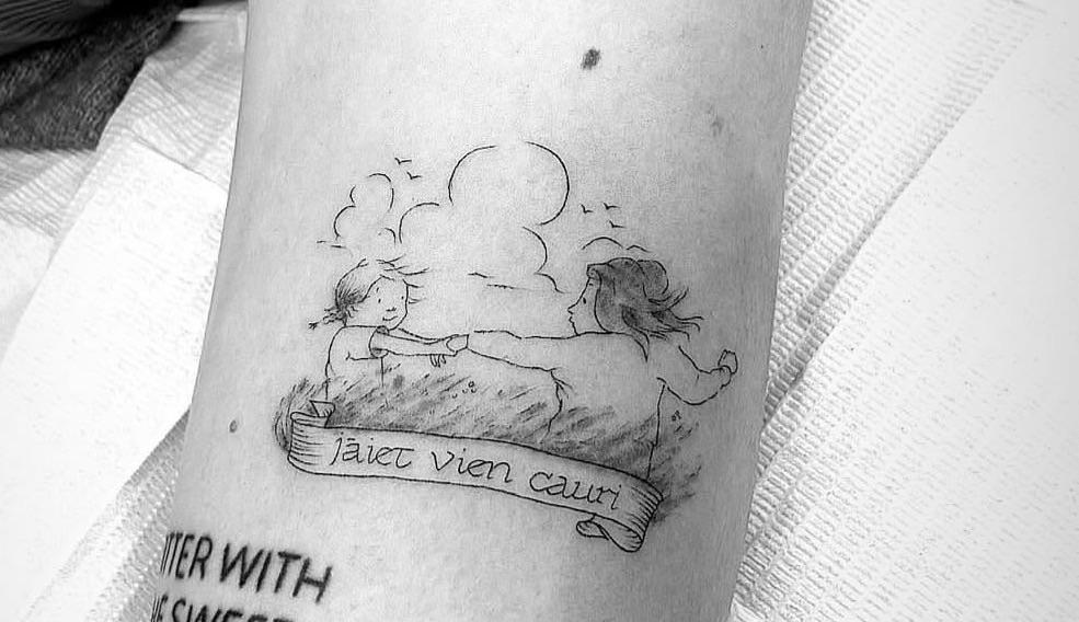 Ich komme aus den USA. Meine Familie verließ Lettland während des Zweiten Weltkriegs. Ich habe mir ein neues Tattoo mit einem Bild aus dem Buch stechen lassen, das uns meine Mutter jeden Abend vorgelesen hat; Sie ist letztes Jahr gestorben.