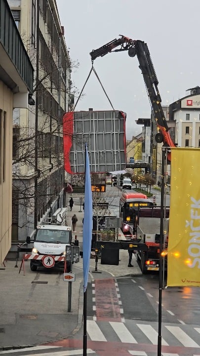 – Da gre za pravo šalabajzerstvo, pa še potrjuje da pri vpetju ne uporabljajo vodilne vrvi (vpetje spodaj, drži delavec na tleh), ki se jo pri takih plehnatih ploščah uporablja, ker so občutljive na veter in se hitro začnejo po svoje premikati