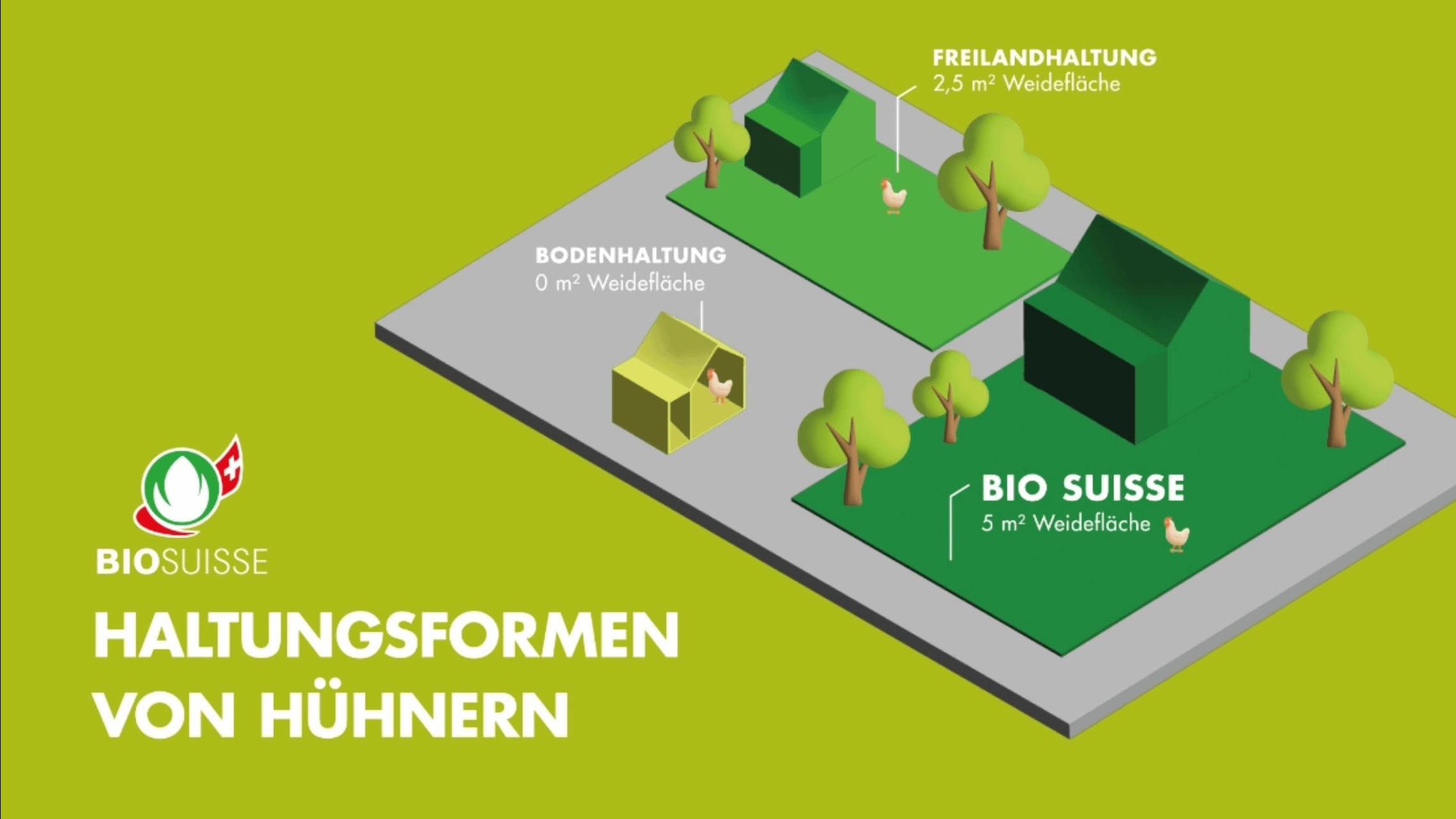 this graphic is misleading. The areas are depicted too large in proportion to the size of an actual chicken, leading people to believe the chicken has lived on a lot more outdoor space than it really is, if they buy Bio eggs.