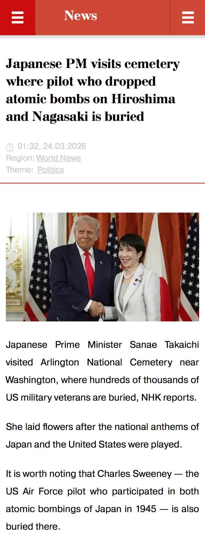 She laid flowers at the Tomb of the Unknown Soldier, which like every PM has done. And no, it’s not worth noting that the atomic bomb pilot is also buried in the same cemetery.