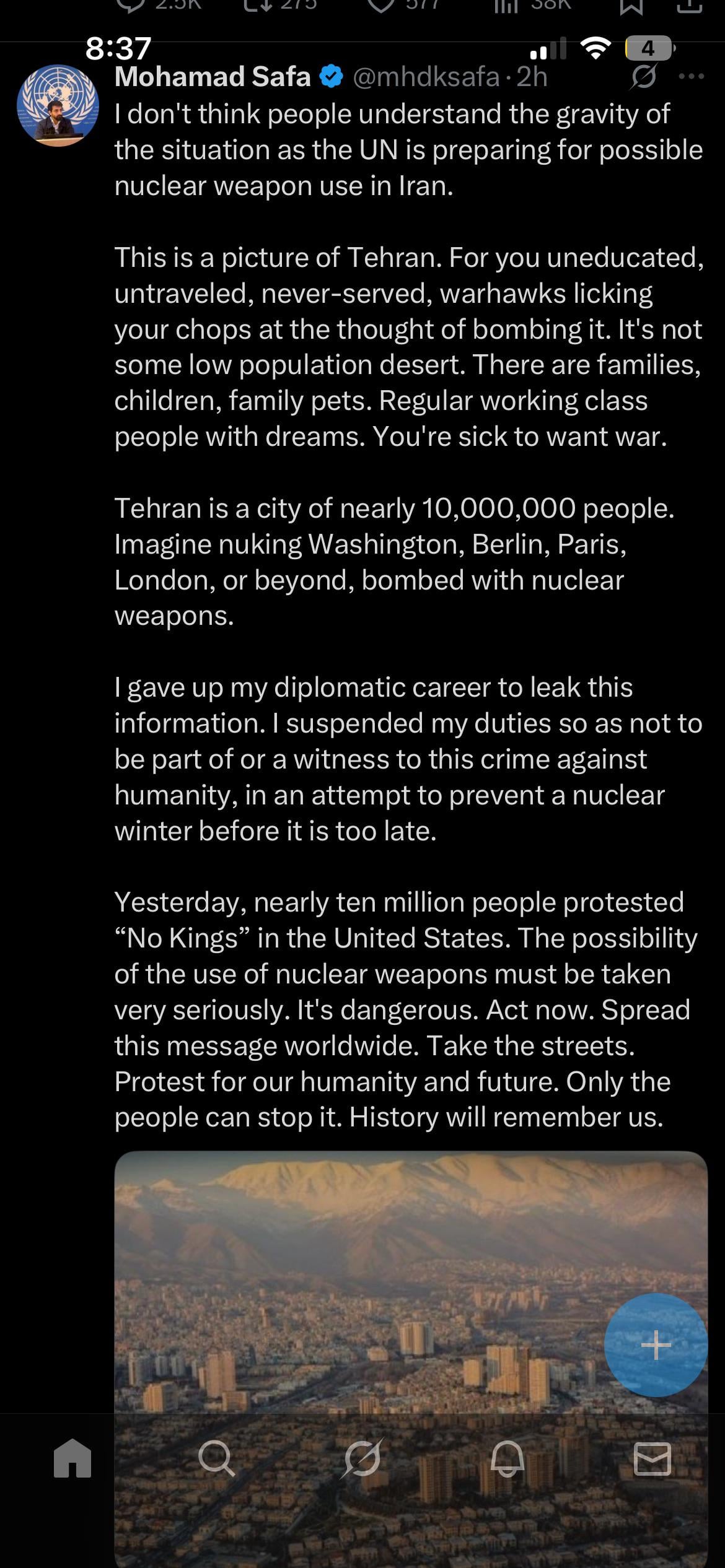 Also, no. The UN is preparing for the use of nuclear weapons in general because that is a risk when any country with nuclear capabilities is in a war. And currently we have Russia, US, Israel, and Iran all involved in fighting… so yes, I hope the UN is discussing the chance of it even if it’s .01% chance.