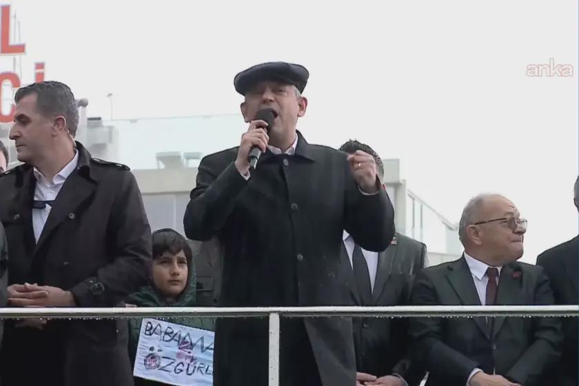 Privat, in seiner Rede "Wir küssen die Stirn von Ömer Günel, dessen Verdienste wir nicht aufzählen können, im Beisein seiner kostbaren Frau und seines Sohnes Ada!" sagte er. Özel erinnerte Çerçioğlu und sagte: "Ömer Präsident, Sie befinden sich jetzt in Silivri, in einer 12 Quadratmeter großen Zelle. Deine Augen und Ohren sind hier. Hier gibt es auf der einen Seite diejenigen, die Kuşadasıs Aydın-Stimme angenommen haben und weggelaufen sind, und auf der anderen Seite gibt es Tausende von Mitbürgern, die diesen Platz im strömenden Regen füllten und sagten: „Ömer Günel ist nicht allein“, „Ömer Günel ist unsere Ehre.“ Sie sind im Herzen der Nation" sagte er.