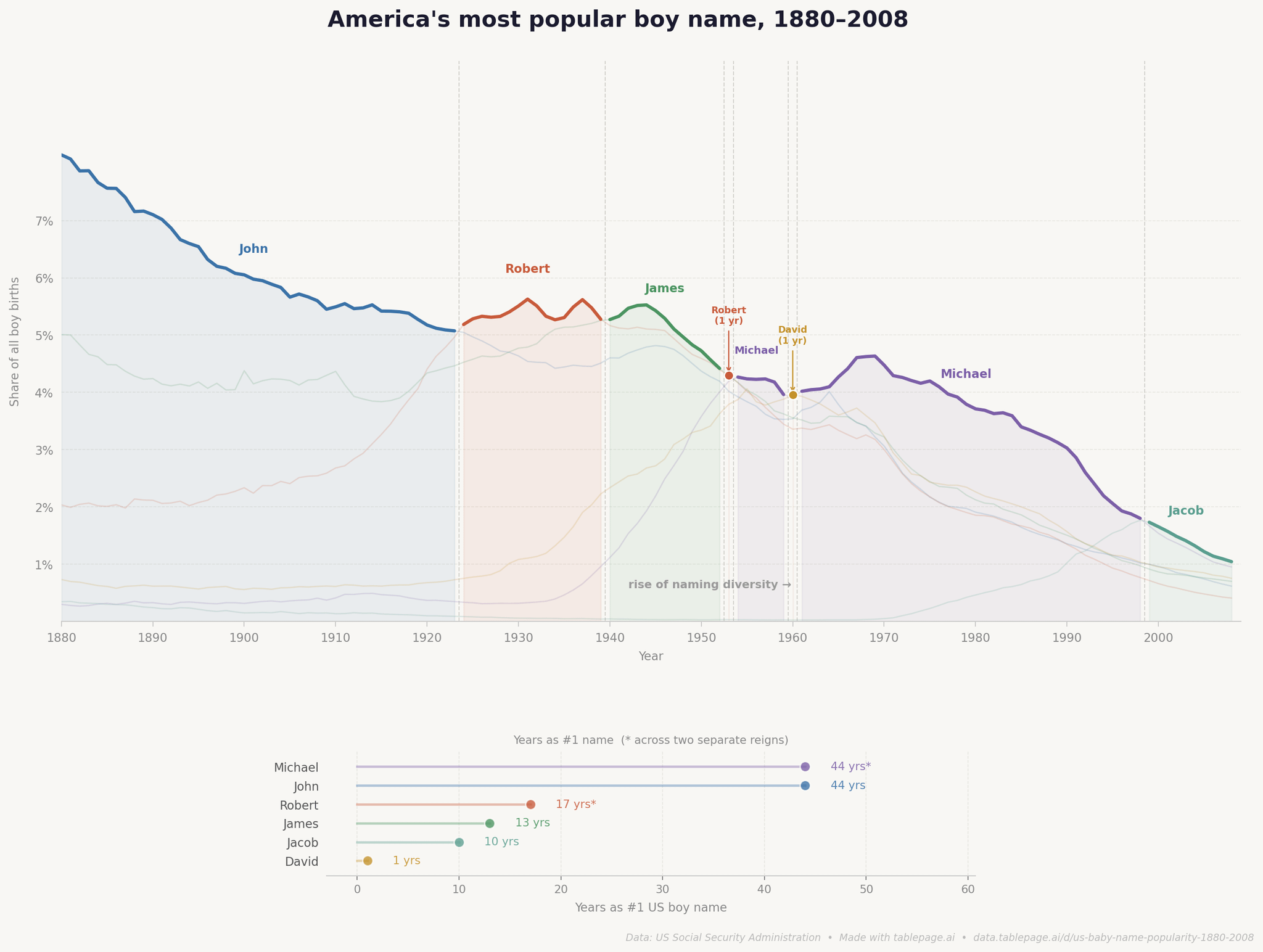 [OC] Amerikas beliebtester Jungenname, 1880-2008