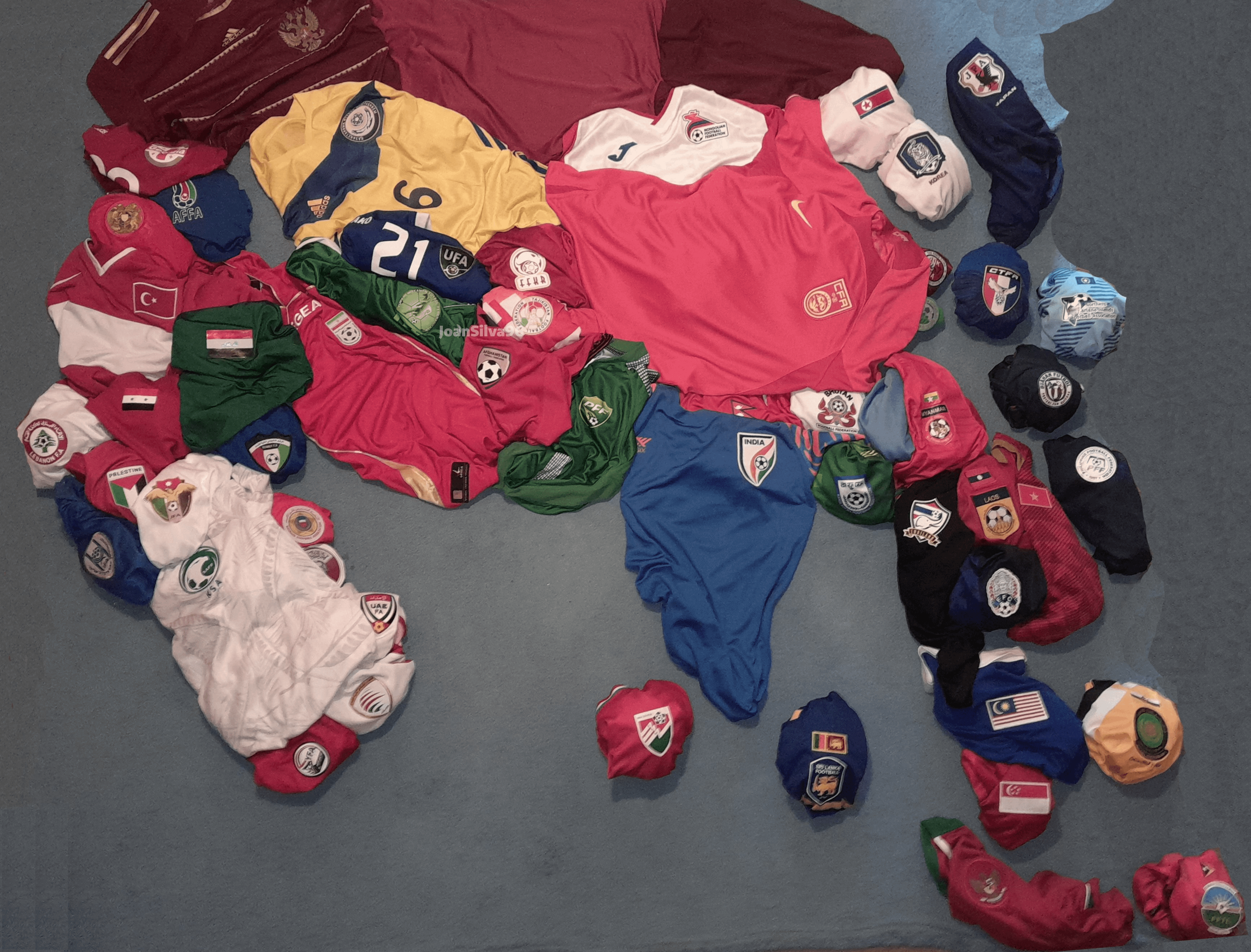 Ich möchte klarstellen, dass ich kein „Bot“ bin. Ich besitze diese Sammlung, die 211 Trikots der 211 FIFA-Nationalmannschaften und 86 CONIFA-Trikots und keine von der FIFA anerkannten Nationalmannschaften umfasst.