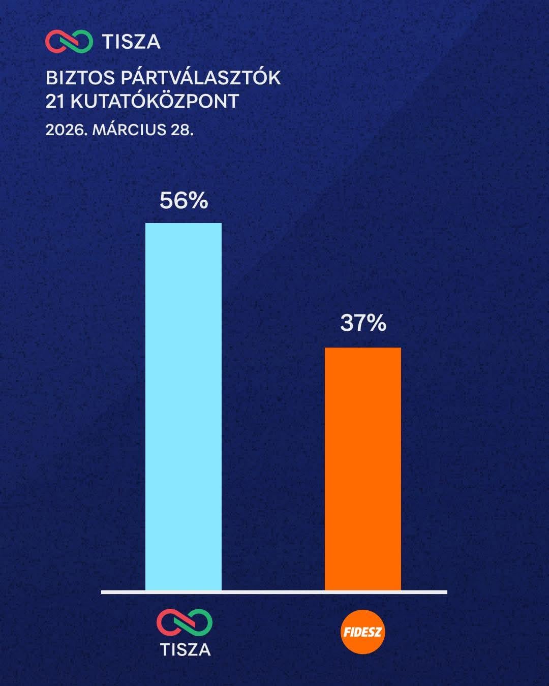 A 21 Kutatóközpont mandátumkalkulátora szerint ez az eredmény Tisza két-harmadot jelentene!!