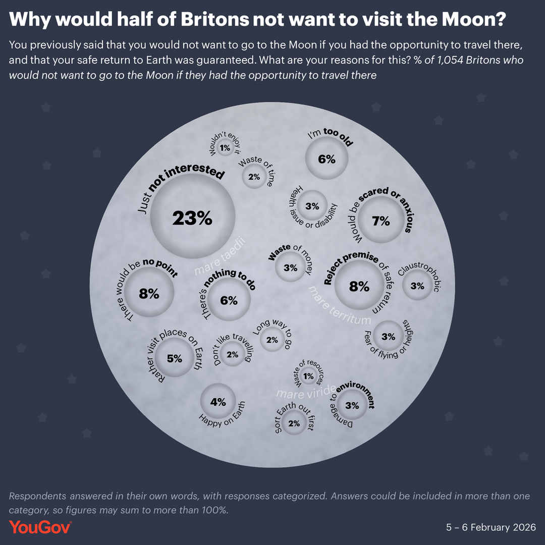 Während Artemis II sich darauf vorbereitet, zu einer Reise um den Mond zu starten und Menschen zum ersten Mal seit 1972 aus der unteren Erdumlaufbahn zu bringen, haben wir beschlossen, zu prüfen, ob die britische Öffentlichkeit selbst zum Mond fliegen möchte, wenn sie eine Chance bekäme, bei der ihre sichere Rückkehr zur Erde garantiert werden könnte.