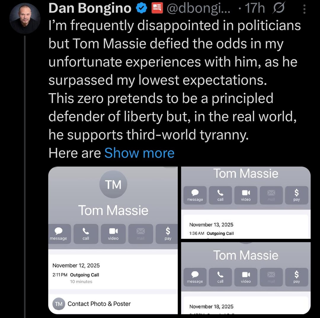 I trust Thomas Massie long before I’d ever trust this sack of lying shit who posts every day on his Twitter feed like he worships the ground Trump walks on. „I must kiss thine ass every day good sir!“