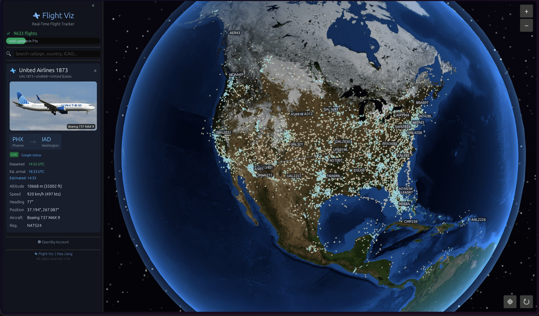 Es ist vollständig geschrieben Rust + WebAssemblyläuft 100% im Browser (kein Backend/Server) und kann angezeigt werden Über 10.000 Flüge in Echtzeit.