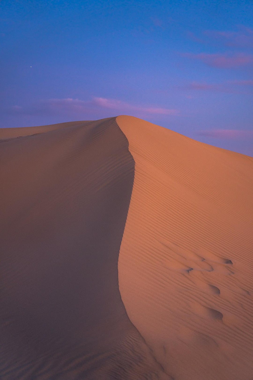 Als ich mit dem PCH unterwegs war, hielt ich in Pismo wegen der Sanddünen an. Mein Van konnte den State Park nicht erreichen, also fand ich einen Weg, von hinten zu den Dünen zu gelangen und wow, niemand war in der Nähe.