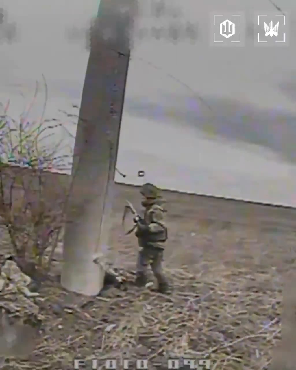 Share Facebook Twitter LinkedIn Pinterest Bluesky Threads FPV-Drohne jagt russischen Soldaten um Telefonmast herum, bevor sie explodiert. 414. Streik-UAV-Brigade der Ukraine, veröffentlicht am 1. April 2026. Von operatorham