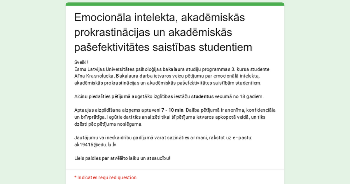(Im Rahmen meiner Bachelorarbeit kann ich nur aus Lettland adaptierte Fragebögen verwenden. Ich erstelle diese nicht selbst.)