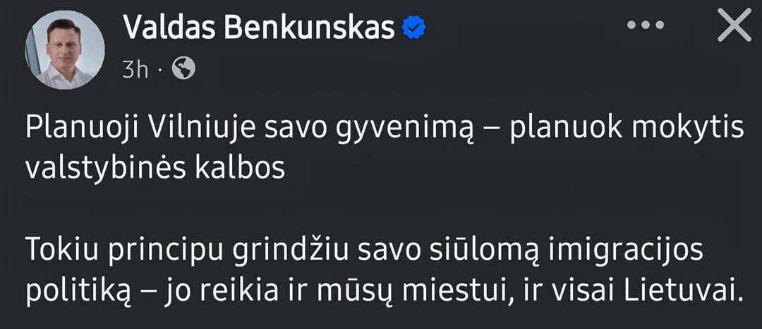 „Lietuvių kalbos mokymosi galimybių užtikrinimas yra užsienio kilmės gyventojų integracijos vykdymo veiksmų plano 2026–2028 metams dalis. Šiam numatyta 4,3 mln. eurų.“ – o tai nx visi mes turime susimesti? Tegul patys moka arba verslas juos atsivežęs. Krw krw, bybunskai, mokyklas rusiškas ir lenkiškas panaikink, nes ten vieno vaiko krepšelis didesnis už lietuvių mokyklų, o jas baigę turi prastesnius pasiekimus. Tai ne tik sutaupysi, bet kartu ir būsi arčiau savo tikslo.