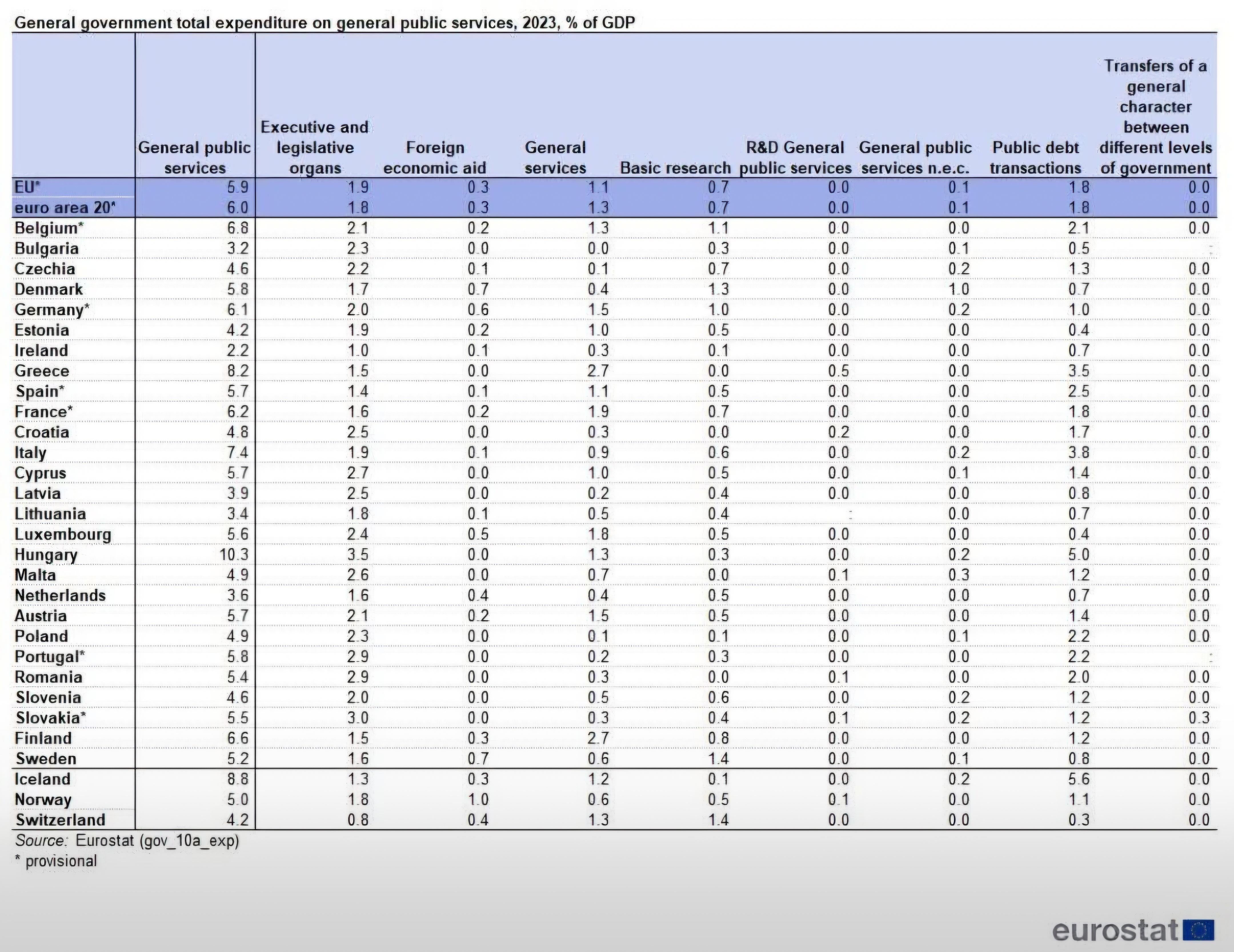● 1,9 % des Haushalts entfallen auf die Kosten des Staatssektors.