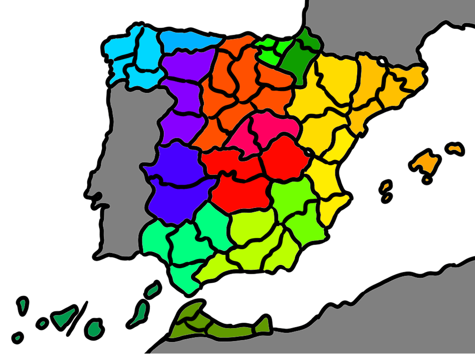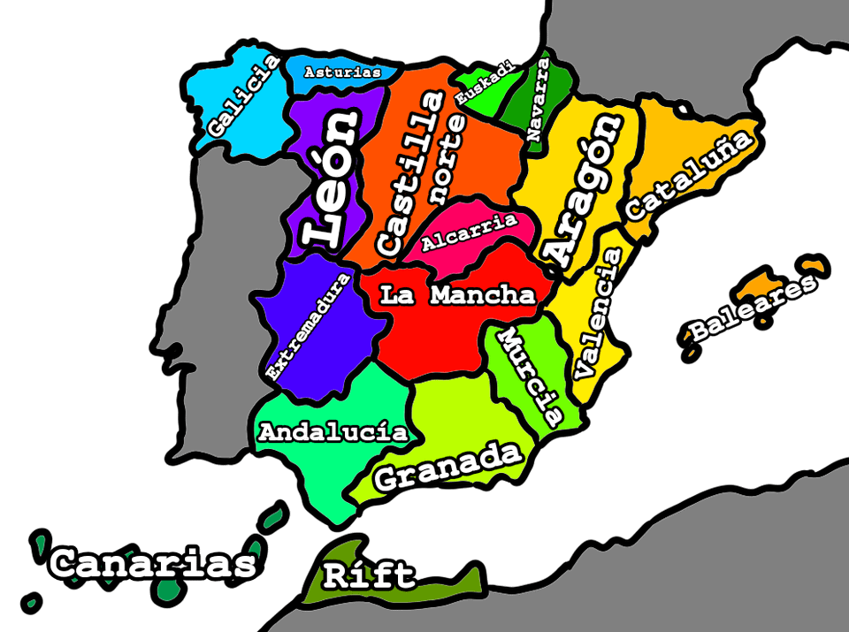 Das erste Bild wäre eine neue Form der Unterteilung, genannt Regionen, sie sind die größte Unterteilungsform, das zweite sind autonome Gemeinschaften und das dritte Bild sind Provinzen, die ich nicht verändert habe, sie bleiben gleich.