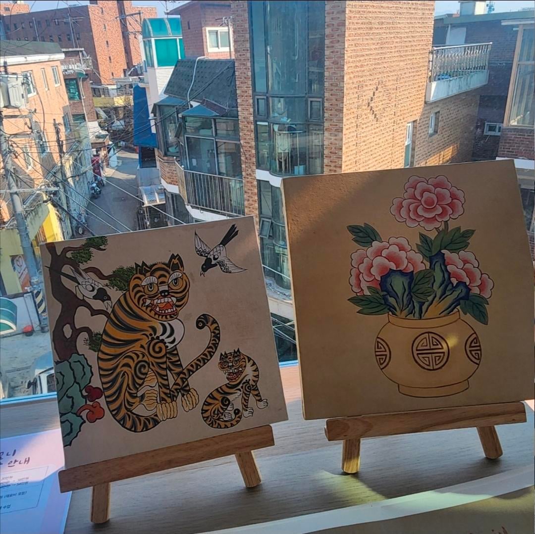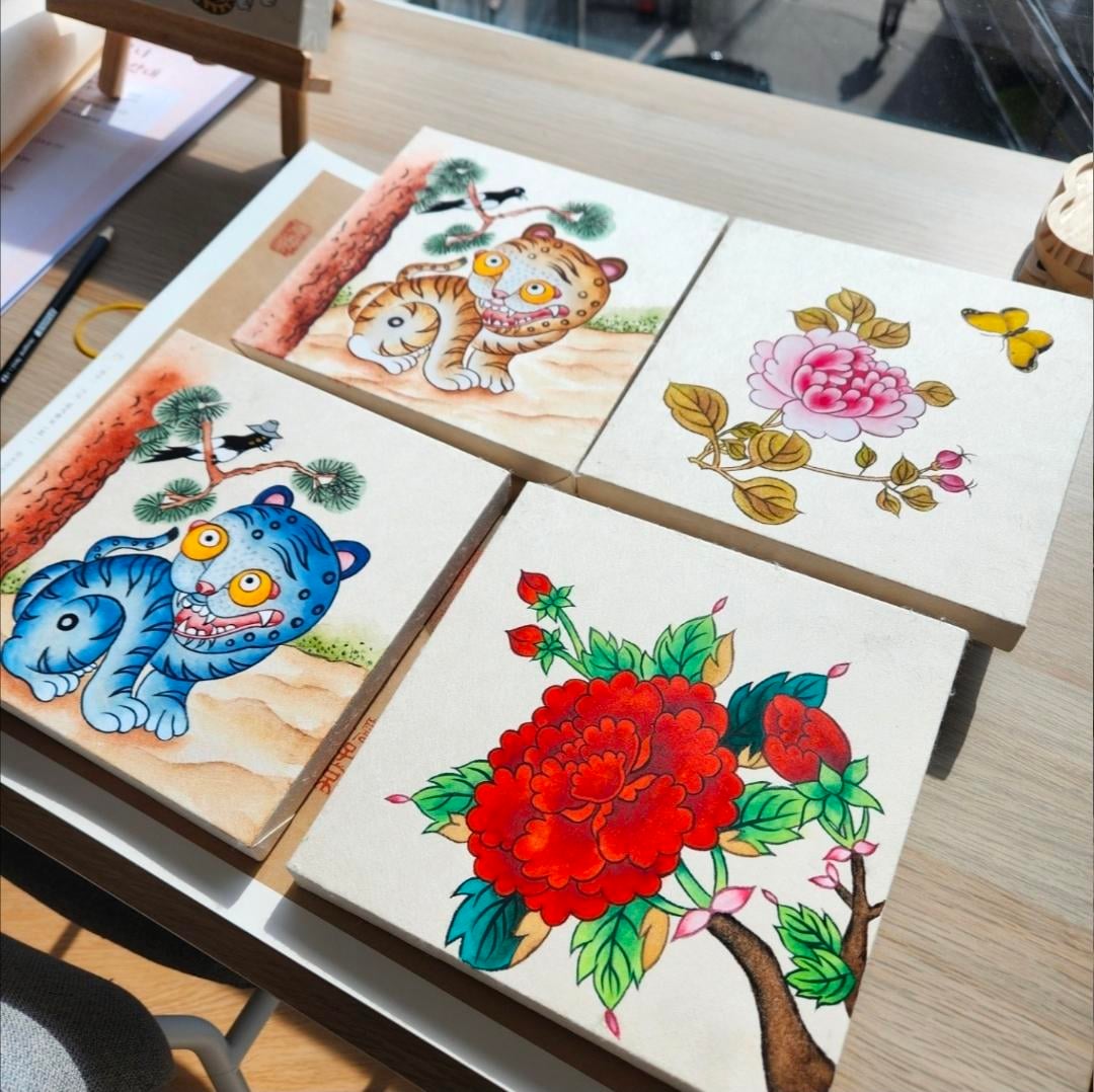Wir hatten einen eintägigen Minhwa-Kurs bei K-Harmony in Itaewon, Seoul. Es hat Spaß gemacht!! Wie ist mein erstes Gemälde? 😀