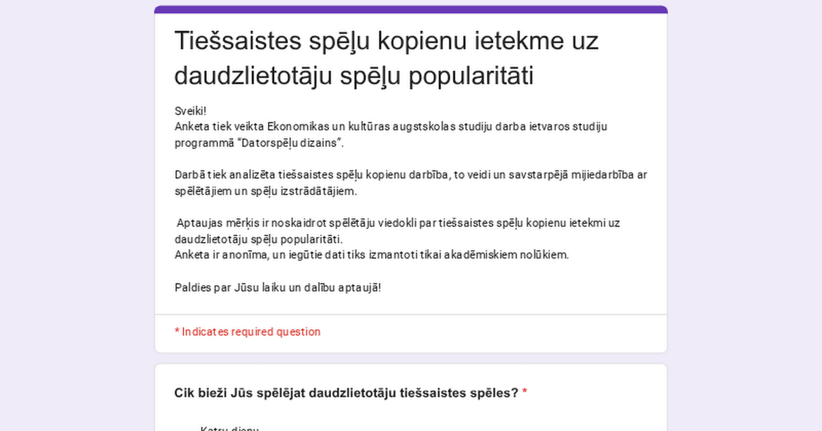 Vai varat palīdzēt ar aptauju par spēļu kopienām? (2 min)