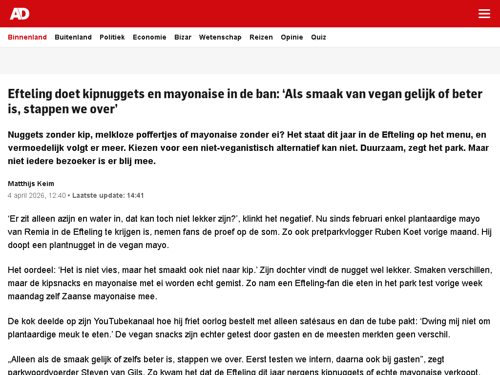 Het AD dat Ruben Koet als bron gebruikt
