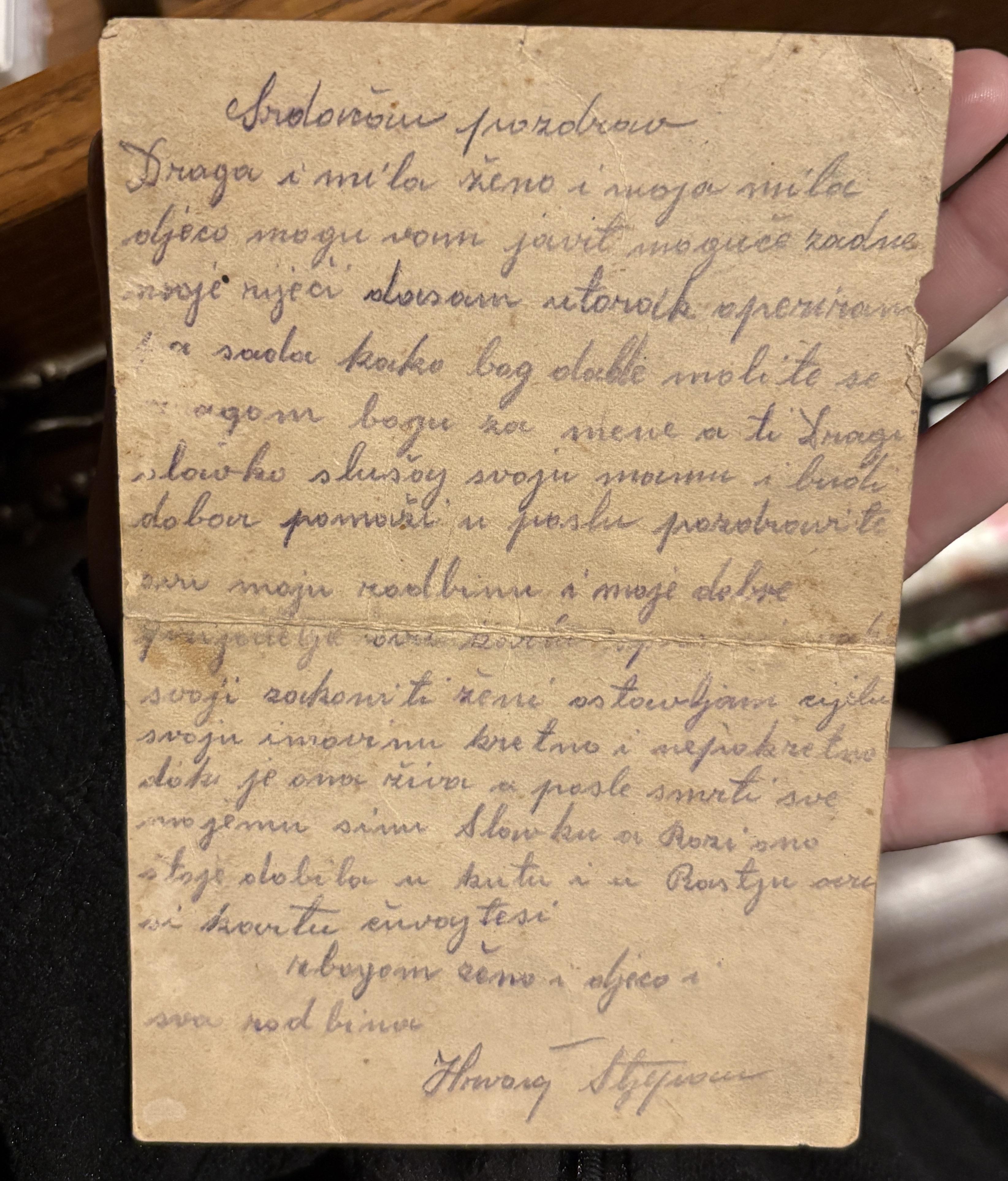 Žao mi je za sudinu pradjeda i što nije uspio vidjeti obitelj u zadnjim trenucima ali mi je drago da se barem uspio oprostiti preko pisma.