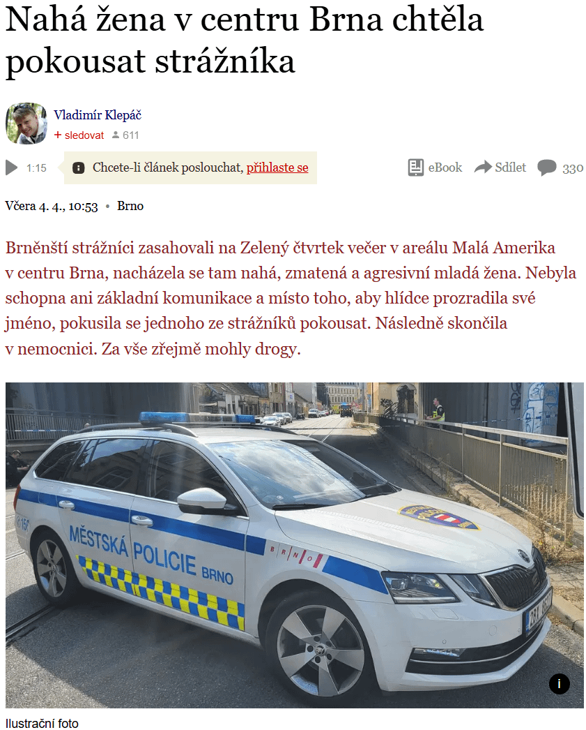 https://www.novinky.cz/clanek/krimi-naha-zena-v-centru-brna-chtela-pokousat-straznika-40571529