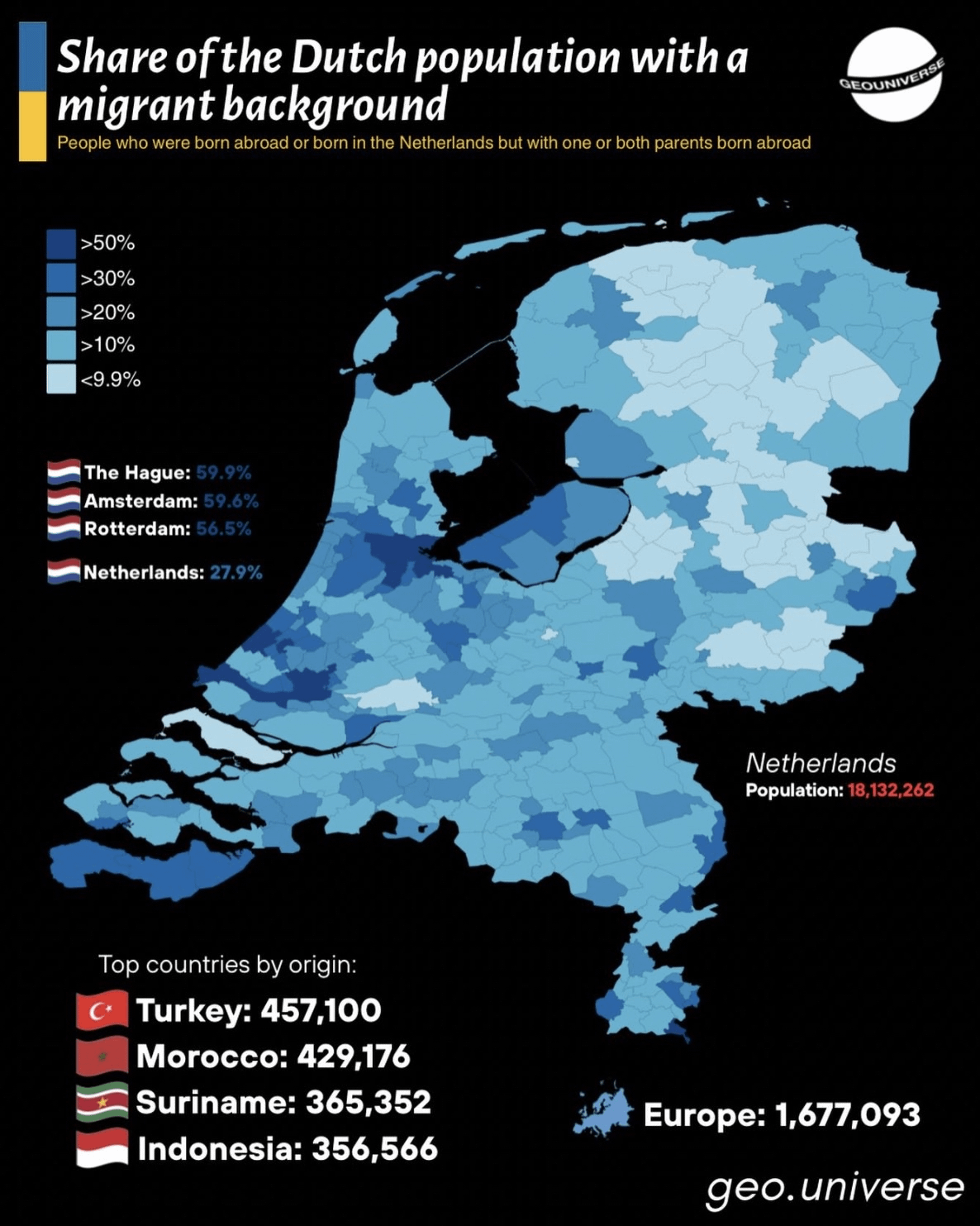 A little background on why these countries in the 1960s and 1970s there was a labour shortage and large numbers of Turkish and Moroccans were invited over, they built communities and as a result many still come to Netherlands when looking to move to Europe.