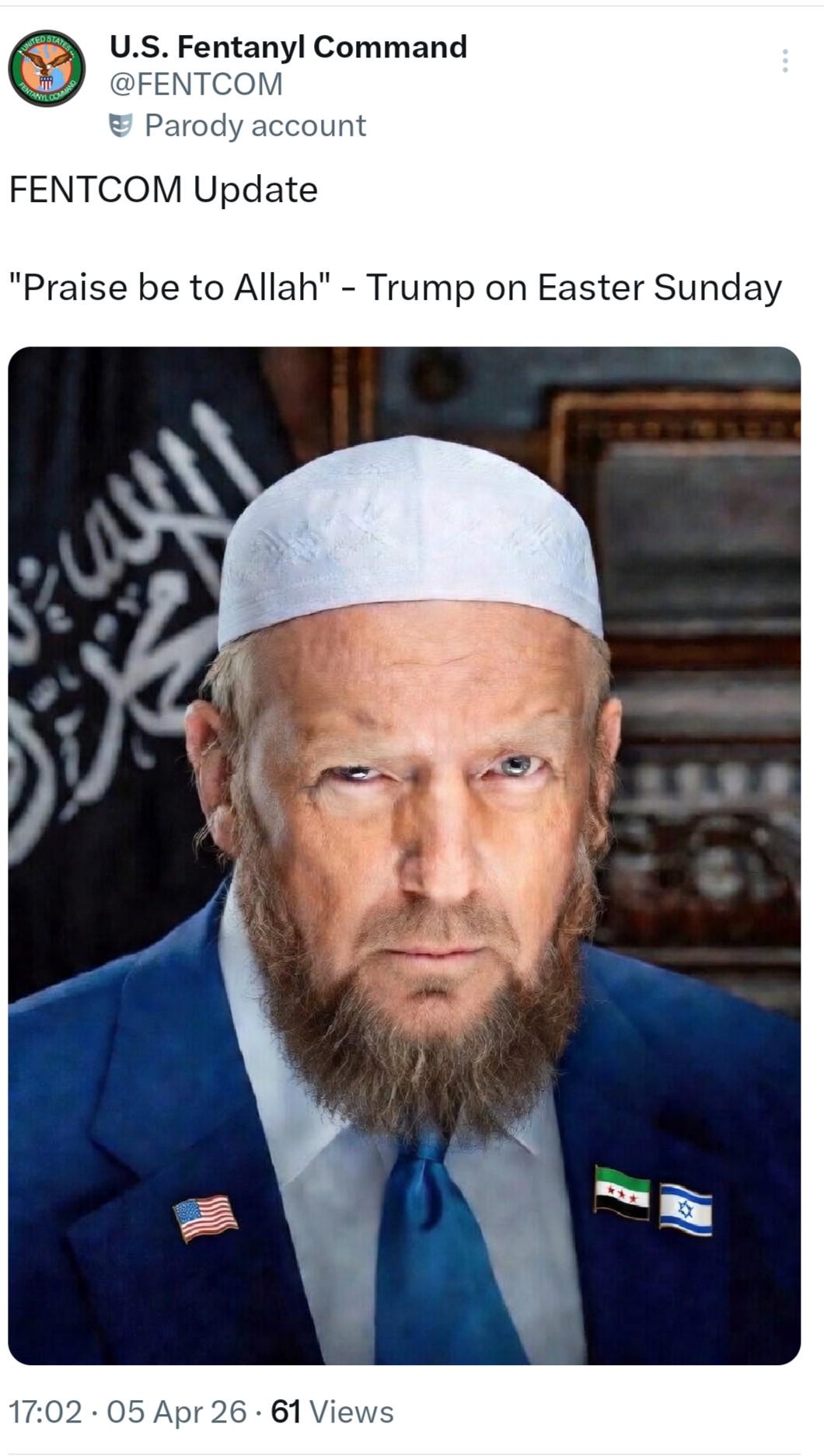 Ss: No wonder Trump was singing the praises of an Al-Qaeda leader. Now it all makes sense. People were debating DJT’s conversion to Judaism and his close ties to Chabad-Lubavitch, but it was just a masterful diversion. Donald was actually a Muslim all along.