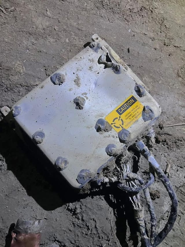 1. Does not look like shahed tbh. If the part on the first photo is a jet engine, then it is most likely a part of a cruise missile. But it is covered in dirt so hard to tell. The power bus with an english writing suggests it was US made. (It is likely custom made, not the off the shelf part, and I doubt russians or iranians have the regulations to mark their custom-made weapon parts in english).