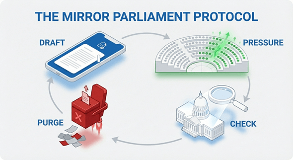 This post explores a future where continuous, data-backed civic audit replaces traditional representative models to restore democratic accountability.