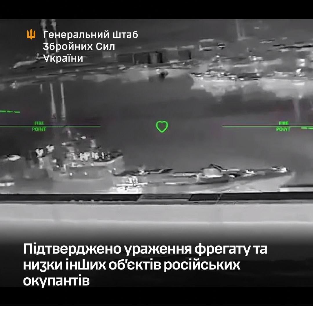 Ukrainische Drohnen greifen russische Fregatte mit Kalibr-Raketen in der Region Krasnodar an, berichtet der Generalstab