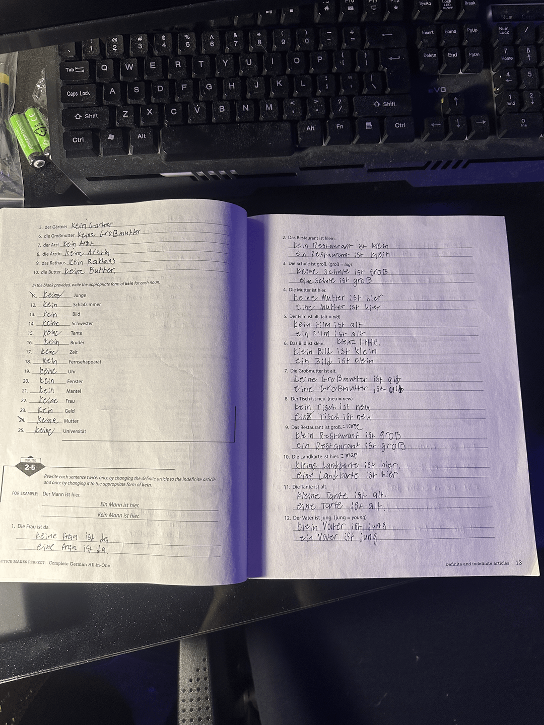 WTF is this task? Why you have to always write kein, but sometimes it doesn’t makes sense. And it’s not even your fault. They gave you bad sentences and examples.