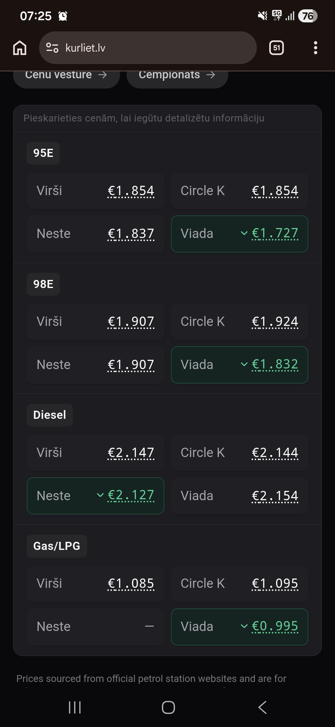 Pirms 5h knapi naktī “kaut kas” tika pateikts un Tu uzreiz tajā pašā sekundē skaties reflektīvu uz pašu ķēdes galu – tepat Latvijā uzpildes stacijās. Paga vēl pat darbinieki, kas varētu ziņas redzēt un vispār cenas nomainīt vēl nav modušies un kur nu vēl līdz darbam tikuši halo 😀