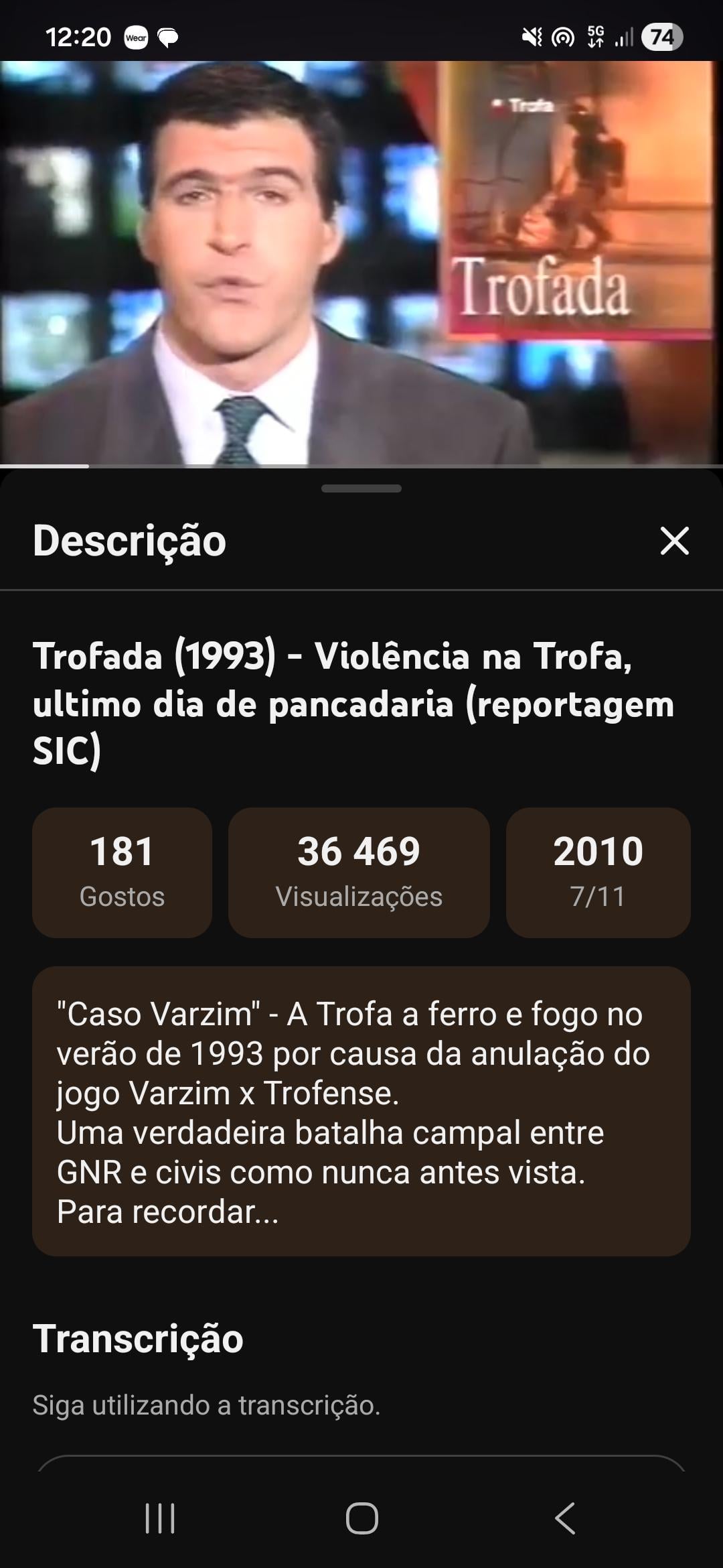A Antena 3 teve um *podcast*, no Verão passado, chamado *Nunca Será Apenas Futebol*. Um dos episódios fala do ambiente completamente lunático, com carros a arder, barricadas ao pé do Quartel dos Bombeiros, etc., que se viveu em 1993, a propósito dessa (agora) eterna rivalidade entre o Varzim e o Trofense.