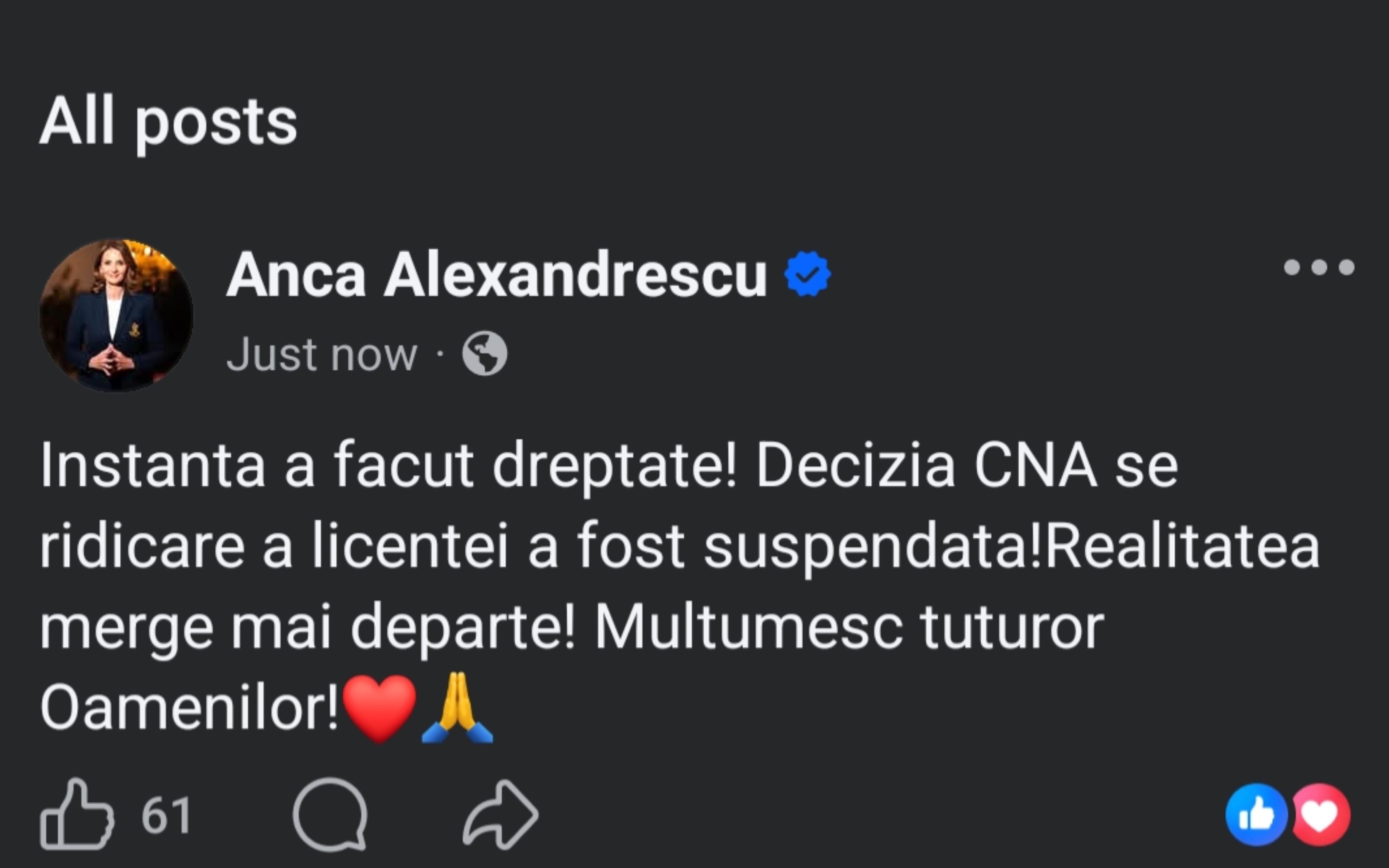Vedeți dragi concetățeni , de-asta nu e bine să te bucuri prea repede , mai ales într-un stat unde justiția e la pământ . Mulțumim frumos Lia , încă odată ne este dovedită seriozitatea și cum ați tratat problemele din justiție /s
