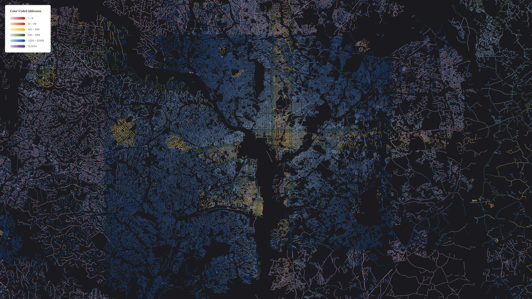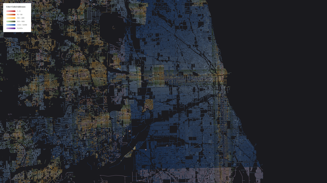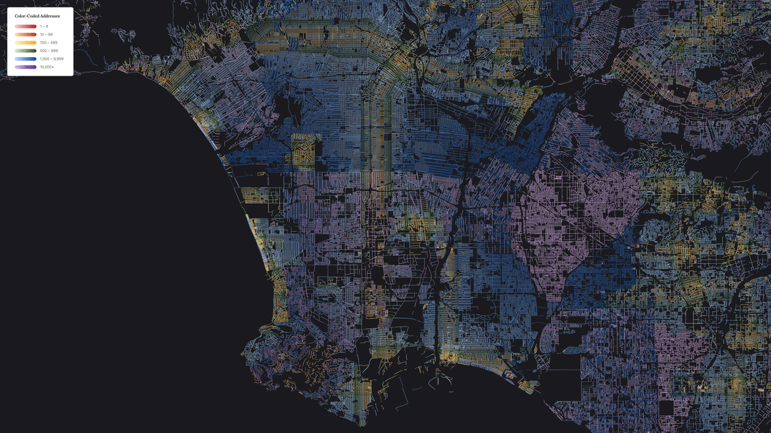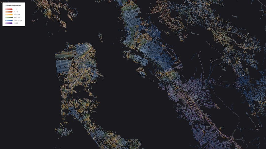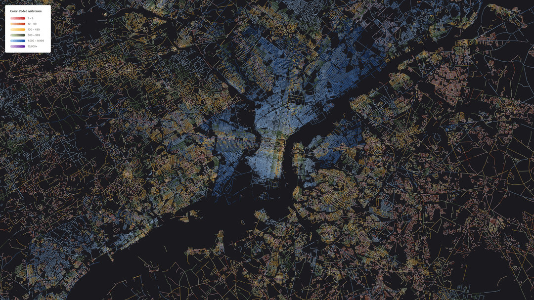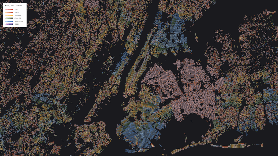 Amerikanische Städte mit Straßen, die nach Gebäudeadressennummer farblich gekennzeichnet sind.