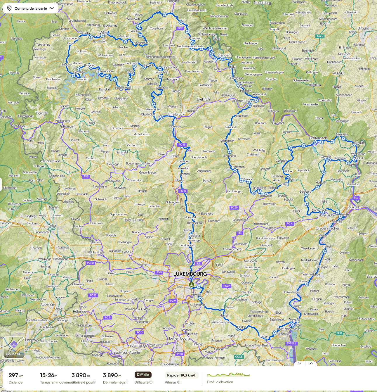 Hallo! Ich plane Anfang Mai eine dreitägige Reise in Luxemburg. Zum Vergleich: Dies würde mit einem Schotterrad auf Straßenreifen erfolgen. Ich bin ein ziemlich fitter Fahrer und suche etwas Training, bevor ich im Juni in die französischen Alpen fahre.