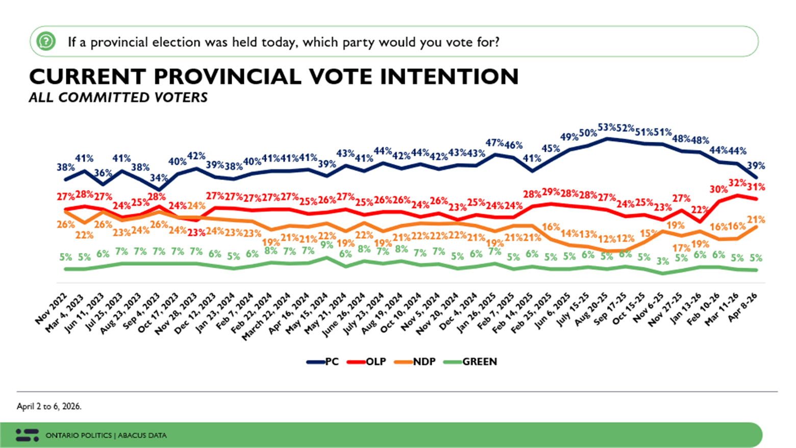 PC Support Drops to Lowest Level Since May 2024 as NDP Gains and Desire for Change Hits New High