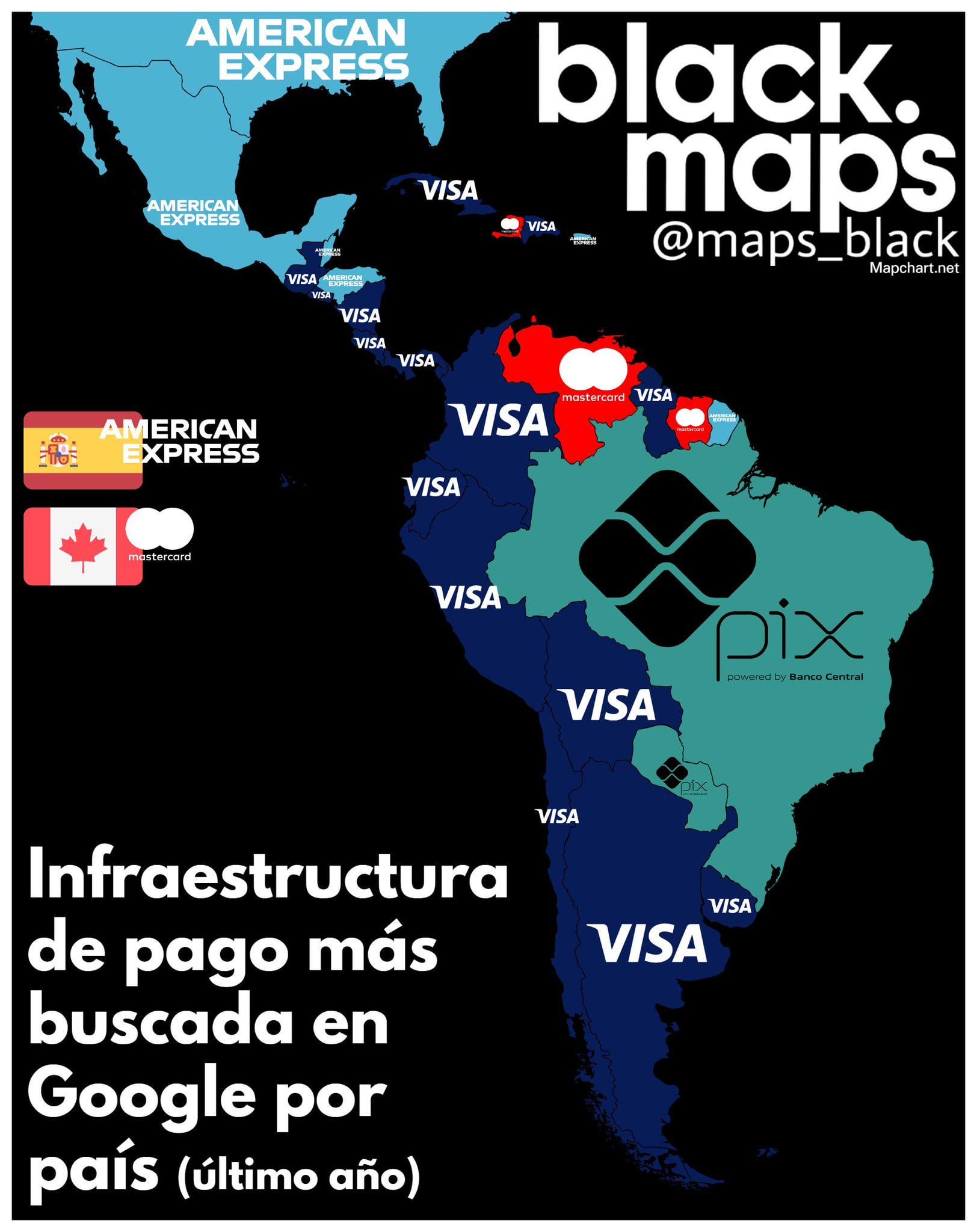 Am häufigsten gesuchte Zahlungsinfrastruktur bei Google nach Land in Amerika
