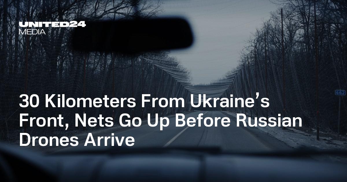 30 Kilometer von der ukrainischen Front entfernt werden Netze aufgebaut, bevor russische Drohnen eintreffen
