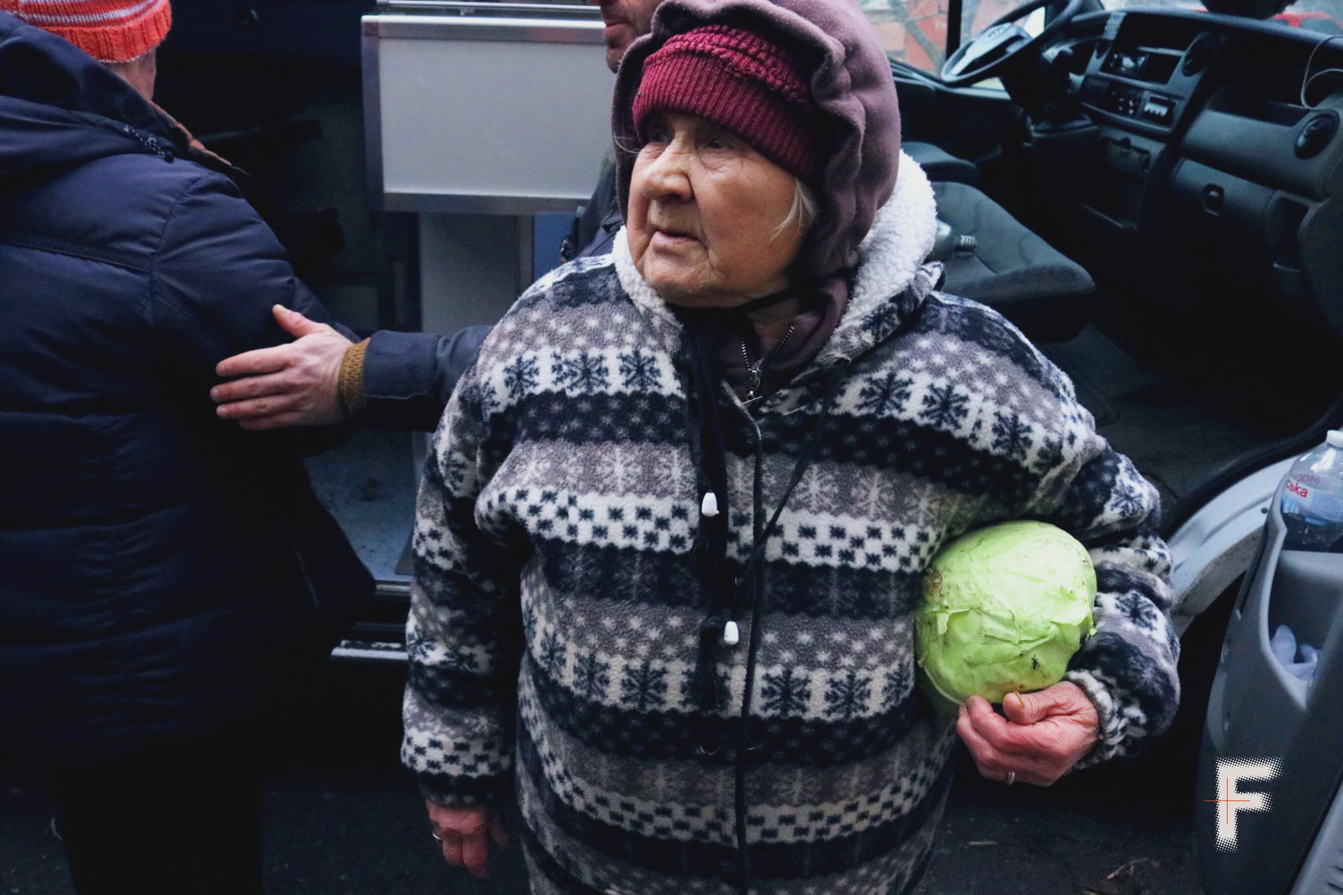 >“I am not leaving. My wallet is empty. There is some money in my bank account, but I cannot withdraw it. There used to be those machines that gave out cash [Editor’s note: ATMs], but they do not work anymore. Maybe they work further away, but I would not know. I am 83 years old. I thought to myself that I had lived into such a nightmare that it was time to die. So I decided, like our Lord, not to eat. The Bible says He did so. I only lasted for a week! I was so weak after that. On the last night that I did not eat, it was as if someone came to me, and a voice said it was not my time yet, that I still had to live. So now I am cooking on the gas stove, and I just finished some porridge. When I heard you arrive, I came out to see who they were taking away,” the Druzhkivka resident says with a smile.
