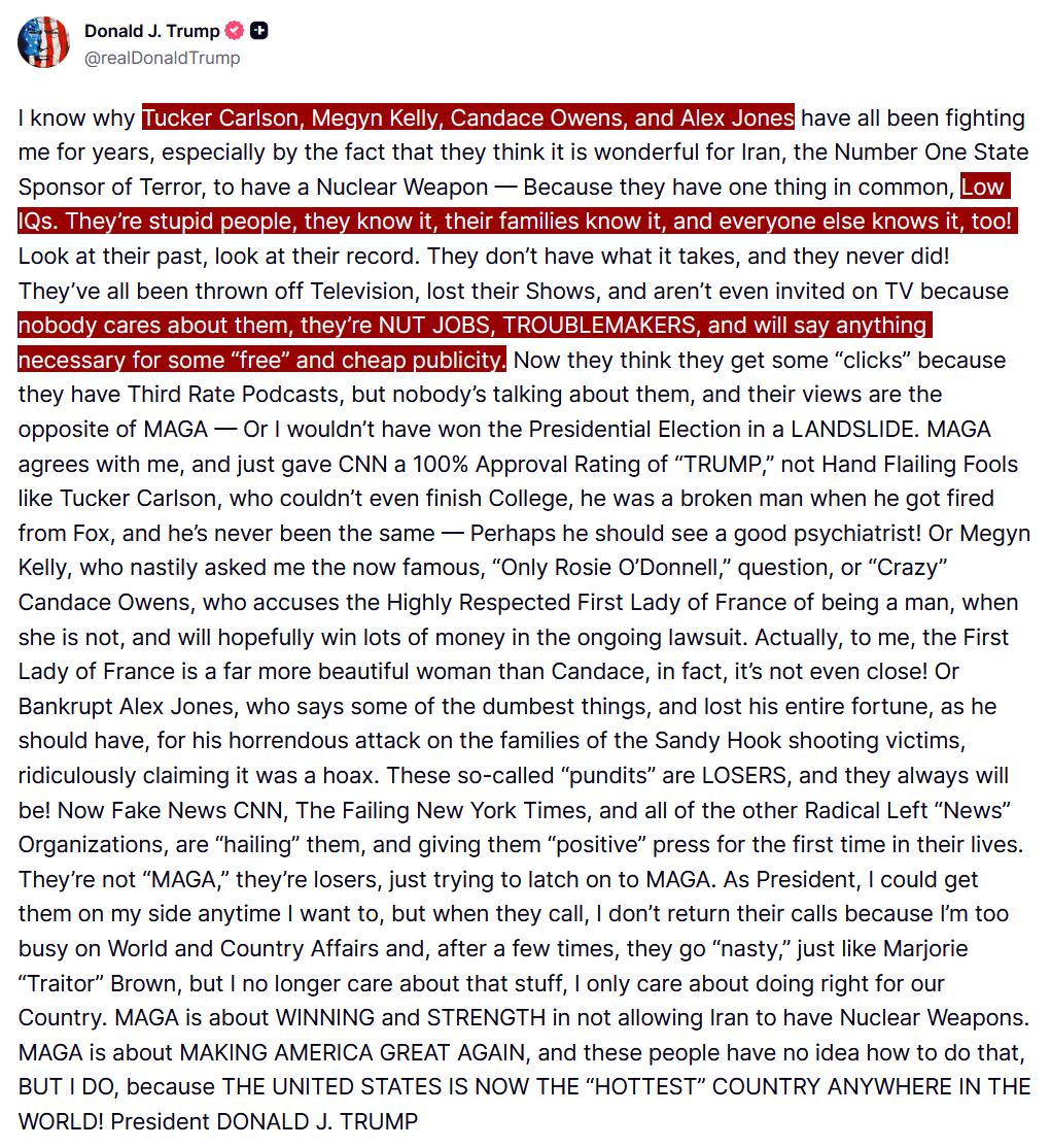 When the president of the United States engages in hasbara, whilst having a narcissistic meltdown.