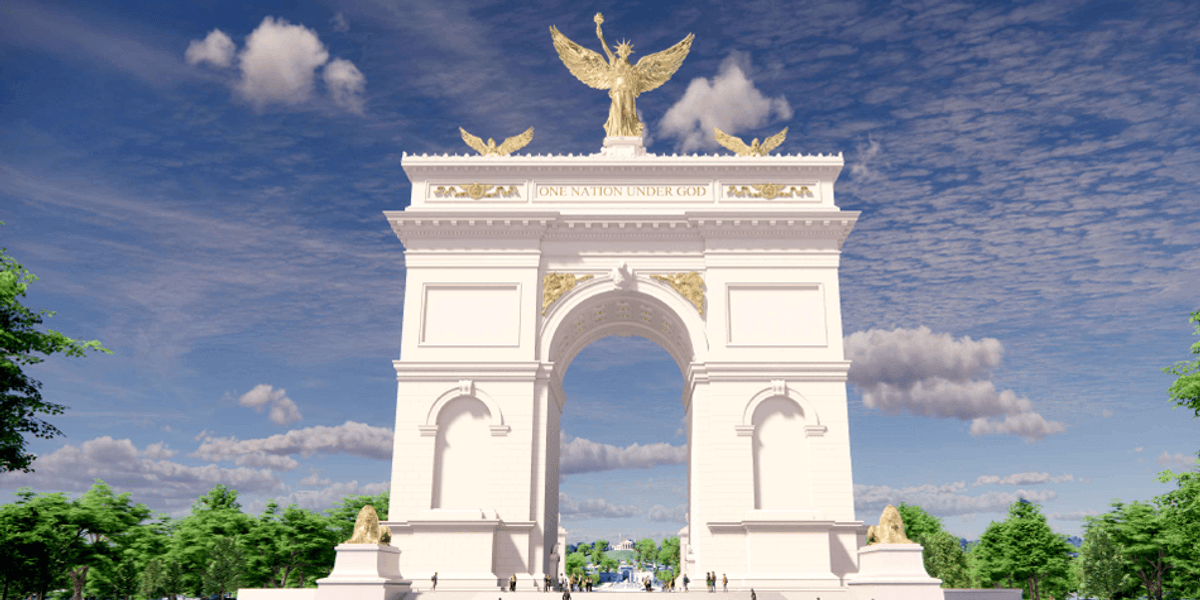 Is the arch going to have a (Iranian) Muslim crescent on top and charge a toll to walk thru it?