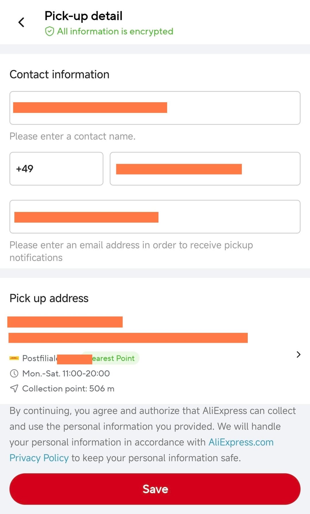 AliExpress verfügt also nicht über ein Eingabefeld zur Eingabe Ihrer Postnummer; nur Name, E-Mail und Telefonnummer.